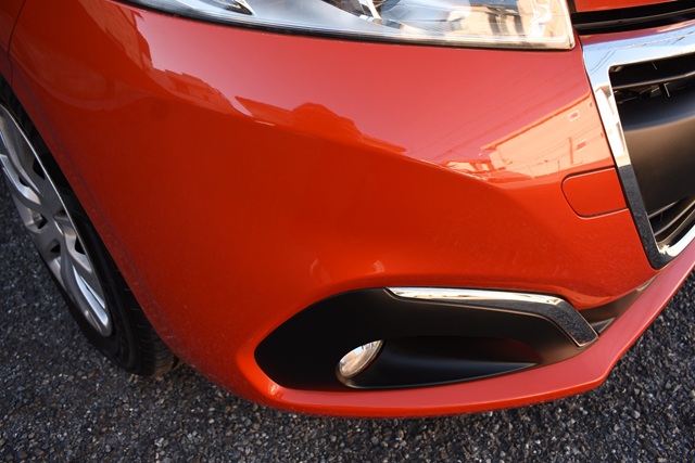 美しい外装です。塗装の色、艶ともに抜群の美しさ。左リアフェンダーに薄いへこみがありますが、その他はバンパー四隅をはじめ、ボディ全体を見渡しても気になるような傷、へこみはありません。ライトレンズも各部の樹脂製モールもとてもきれいです。