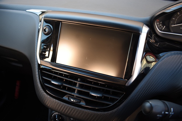 探すと少ない208の後期モデル、フロント回りのフェイスリフトに加え、これまでの1.2リッター自然吸気エンジンから1.2リッターターボ付エンジンに、さらにATもセミオートマのETG5からアイシン製のトルコン式6速ATへ、車格が1ランク上がったくらいのビッグマイナーチェンジです。装備も充実しており、タッチスクリーンパネルに加え、オプションのナビゲーション、フルセグTV、ETCと欲しい装備も揃っています。